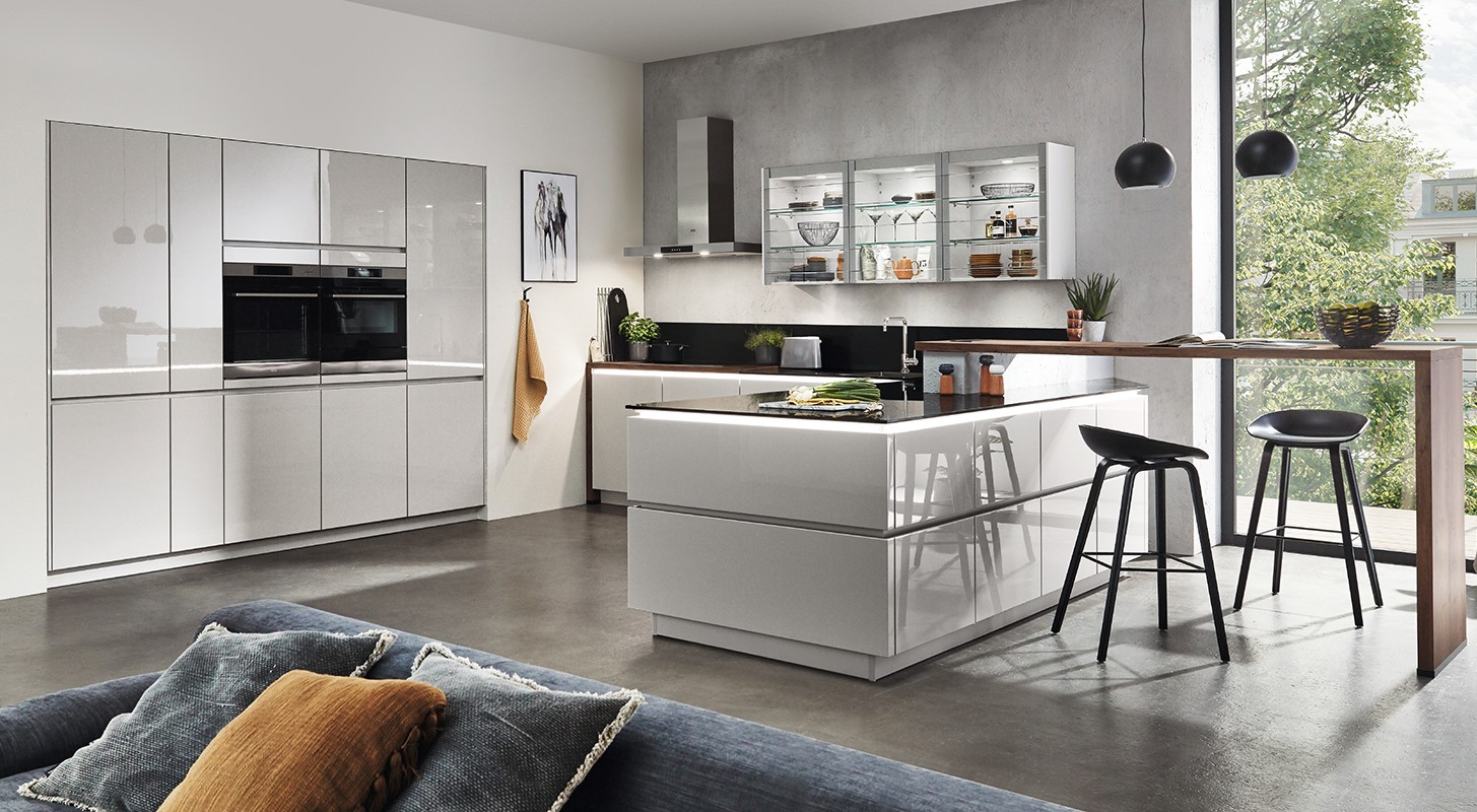 Die perfekte Kombination aus Eleganz und Funktionalität. Mit ihrer zeitlosen Ausstrahlung und den hochwertigen Materialien setzt diese Küche stilvolle Akzente in Ihrem Zuhause. Die luxuriösen Farboptionen Alpinweiß Glanz und Hochglanz verleihen der Küche eine moderne Ästhetik, während die edelstahlfarbigen matten Griffe einen Hauch von Raffinesse hinzufügen. Jedes Detail der nobilia Lux Küche wurde sorgfältig entworfen, um Ihren individuellen Bedürfnissen gerecht zu werden.