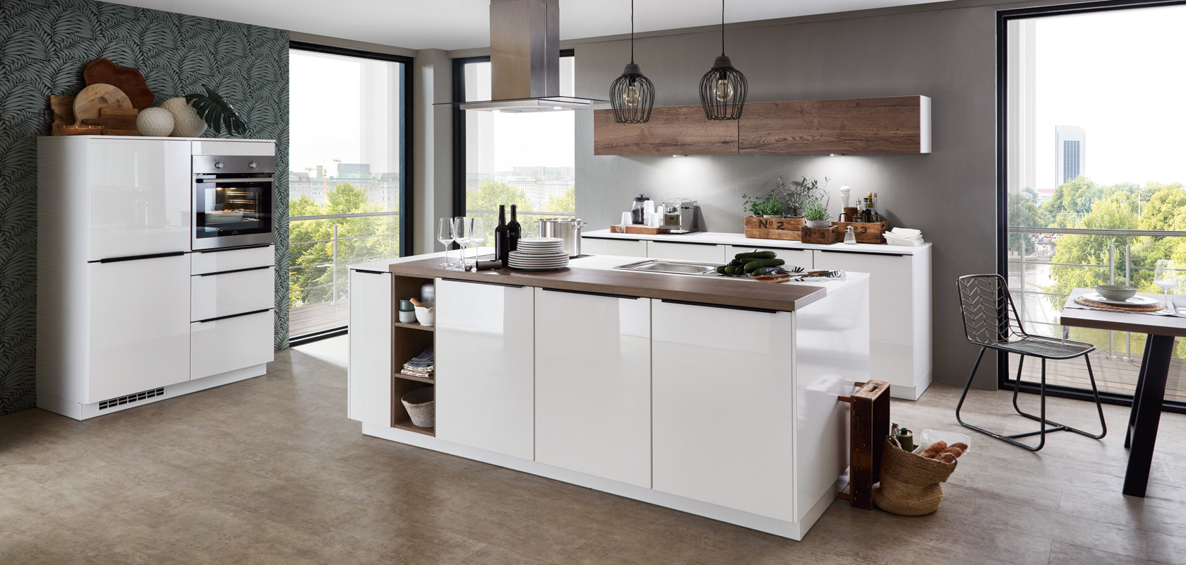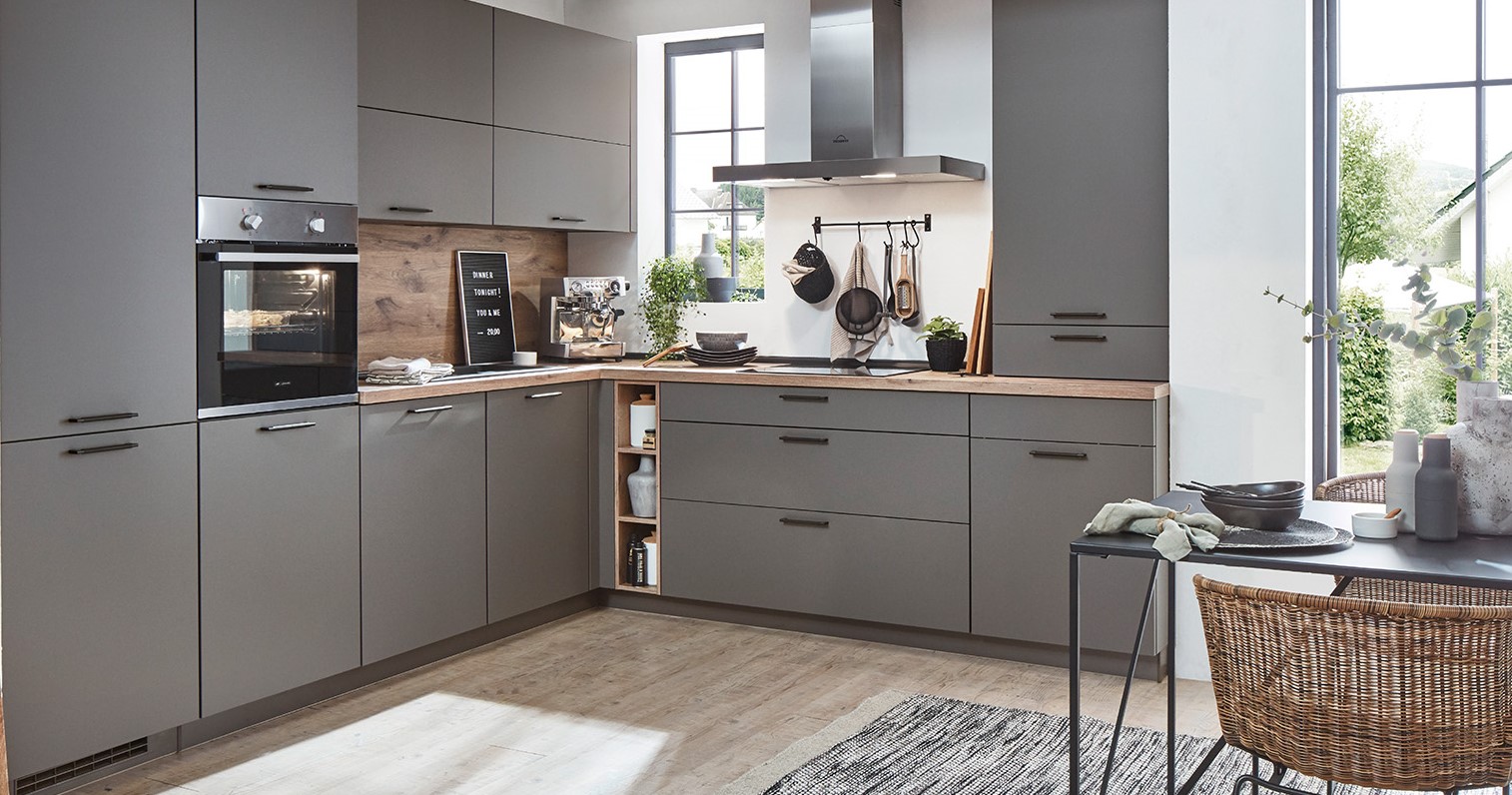 Ein schlichtes, puristisches Design, klare Linien und hochwertige Materialien – das zeichnet moderne Küchen aus. Dadurch setzt sie sich auch stark von Landhausküchen ab. Im Trend liegen natürliche Materialien wie Holz, aber auch Glas, Beton oder sogar Leder kommen zum Einsatz. Vernetzte Elektrogeräte, Arbeitsplatten aus Naturstein, grifflose Fronten, neue Lösungen für Stauraum und Zubehör: Die Ausstattungsmerkmale der modernen Einbauküche sind vielseitig.
