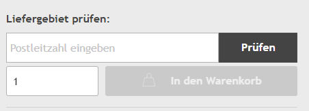 Mit dem Kaufprozesssteuerungs -Plugin von SHD können Sie ein Liefergebiet über die PLZs eingrenzen und auf der Produktdetailseite darstellen. Nach Eingabe der PLZ wird der Kunde informiert, ob der Artikel zu ihm nachhause geliefert werden kann oder nicht. Befindet er sich innerhalb des definierten Bereiches, wird der Warenkorb-Button freigeschaltet und der Artikel kann bestellt werden.